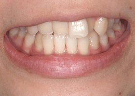 | 治療内容 | 1本の小臼歯も抜歯することなくわずか5ヶ月の矯正期間で治療を完了することができました。初診時アンバランスだった笑顔の口元も、完了時にはバランス良くキレイに整いました。 |
