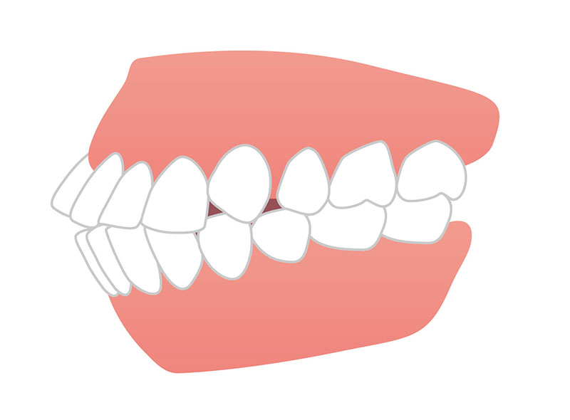 上の前歯が下の前歯に比べて著しく前に出ている状態です。上顎前突は、口唇の閉鎖不全や口呼吸、発音の問題などを引き起こすことがあります。また、前歯の突き上げや外傷のリスクも高くなります。